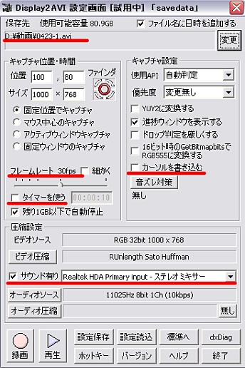 参考サイトさんでは、録画用ソフト【Display2AVI】の項で、保存に関しての注意事項がありましたが、自分が操作するに、保存の上書きは見受けられませんでしたw