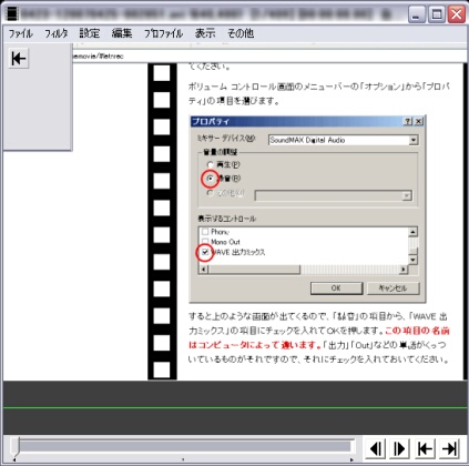 最下部のバーが画像、その上の緑のラインが音声バーになっています。後者の音声バーは、音声が録音されていると波紋となって表示されますw