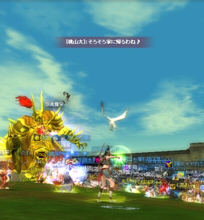 昼間にINしたのはセカンドの方だったのですが、目玉クエ&羽クエをしようと狩場に向かったところ、桃山太さんからのラブコールwww