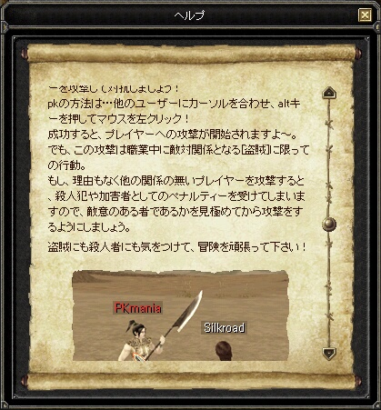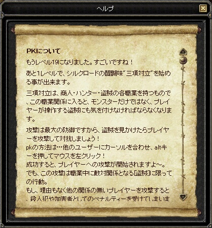 LVが低いうちは、ヘルプが表示されることがあり、LV19ではLV20の三項に備えての文とPKについてが書かれたものが表示されますw