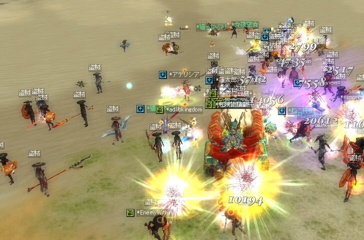 特価ですと、通常よりも多く…ソロ☆1のときには、同時に6人のNPCが沸くこともあるのです。それを大人数での交易で行うわけで、且つ多☆になるとハンパじゃない量の盗賊が沸きますw