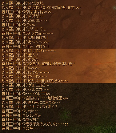 交易中に伺いましたところ、先頭さんは「道を多く知っていて、牛の操作がうまい人」なのだそうです!交易中は、昼間の場合はPC盗賊さんもあまりいらっしゃらないので、殺伐とした交易になることは少ないです……故にPTチャやらで皆でお喋りをしております。先頭さんの話になれば、経験された方からは大変な部分とかも伺えますので、勉強になります><