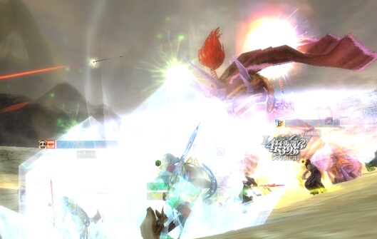 ロックの時と同様に、無言の圧力で狩場を獲得するわけなのですが、射程の長い弓兵をターゲットしまして攻撃すると、反対側でも攻撃動作に入ってる人がいた…!なんてことがよくあるのですwww