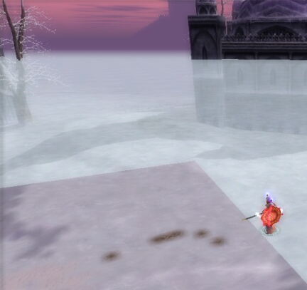 で、自分がよく狩るポイントで、どうもバグが起きたようで、氷にぽっかりと三角の穴が開いておりました!