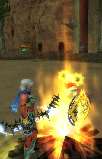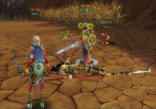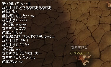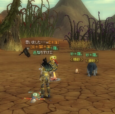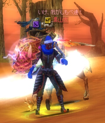 ゆんさんと二人で、敦煌から石窟に向かっておりますと…ゆんさんが『隣に黒山太がいますー!!><』とのこと……馬の速力のせいでだいぶ前に居た自分も振り返ると、そこには赤ネームで若葉マークをつけた黒山が……いたのです!!!