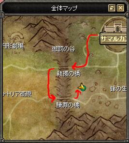 「~に出現しました」という告知を見たのが、最初の橋を渡ったあたり…そこから上に書いてあるルートで探しておりますと……いました!!蜂エリアにポツーンと紫色の点が!!!><
