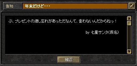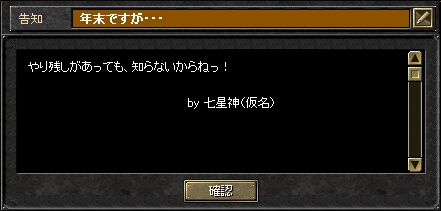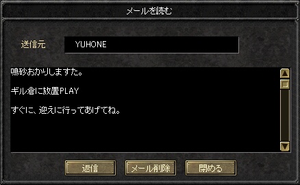もそもそINしてみれば、誰もいなくてガッカリだったわけですが……未読メールに気付いて開いてみると