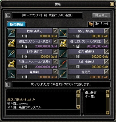 噂のスティキチ露店を発見し、言っていた通りの【抱き合わせ商法】を見……一瞬、その額で売ってるのかと思いましたよ2億G^^;