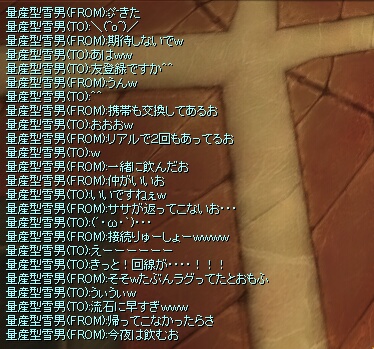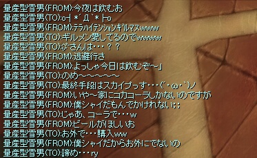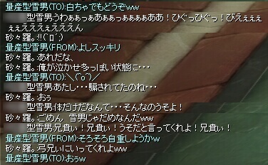 和田で賊衣装の雪男氏とお喋りしておりますと、どうやら㌻さんがログインしてきた模様…w