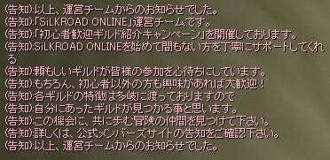 で、今回のこの【初心者ナンタラ】の告知なのですが、狩りをしているときに、じーんとくる内容の放送があったのですが……SSに告知をとったときは、違う文章になっていました><