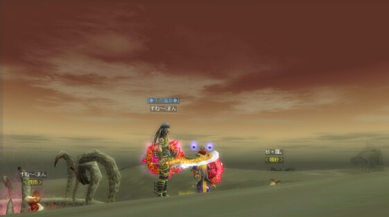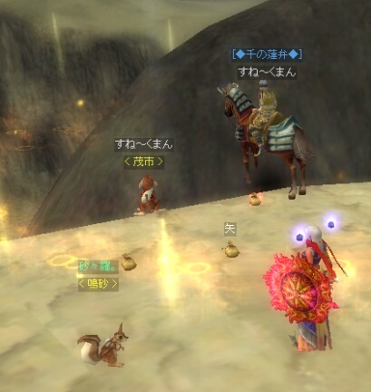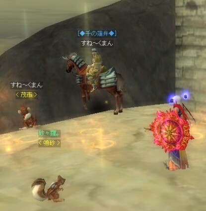 本日の狩場のタクラマカン…ROMをしていた寺院から狩場に向かうと、【千の蓮弁】のすね~くさんが座り込んでおりました^^
