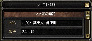 以前にも言ったかもしれませんが、このクエストはSROきってのマゾクエとのこと!ひとまず比較対象で考えられる、タリムの「宝石クエ」の再来といわれますが……レベルの上がったばかりの自分としては、クエストの登場だけでテンションがあがりますwww
