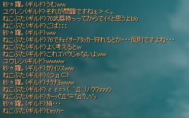 銀河さんと猫豚さんが、藍に出かけておりますので静かなソロギルド生活をしております……が、INすると珍しくお二人揃って談話中でございましたw