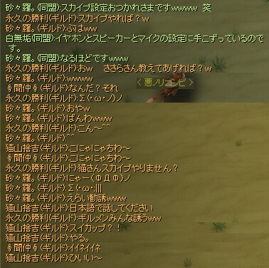 自分がINする時点で既にいる場合が多い人もおりますが、やはりリアルの何事かを済ませてからINしてくるような人も多いわけで……皆が思うに「あ、そろそろ来るんじゃない??」という会話の後、高い確率でINしてくる人がいるのですねwww